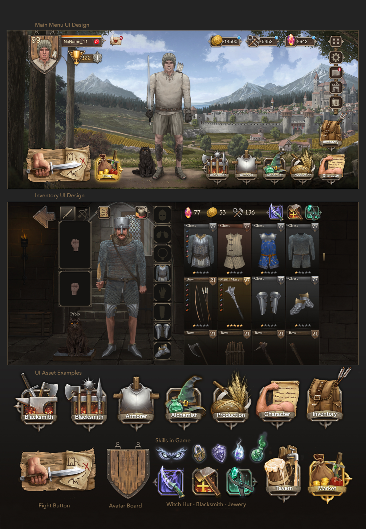 Digital illustrations and custom designs Character Design Sketches and Compositions Sketches and Illustrations Environment Key Arts- illustrations * Environment Key Arts- illustrations * Environment Key Arts- illustrations * High Quality In & Game Medieval Armor Designs and Illustrations Main Menu & Inventory UI Design and Illustration Assets Storyboard Design